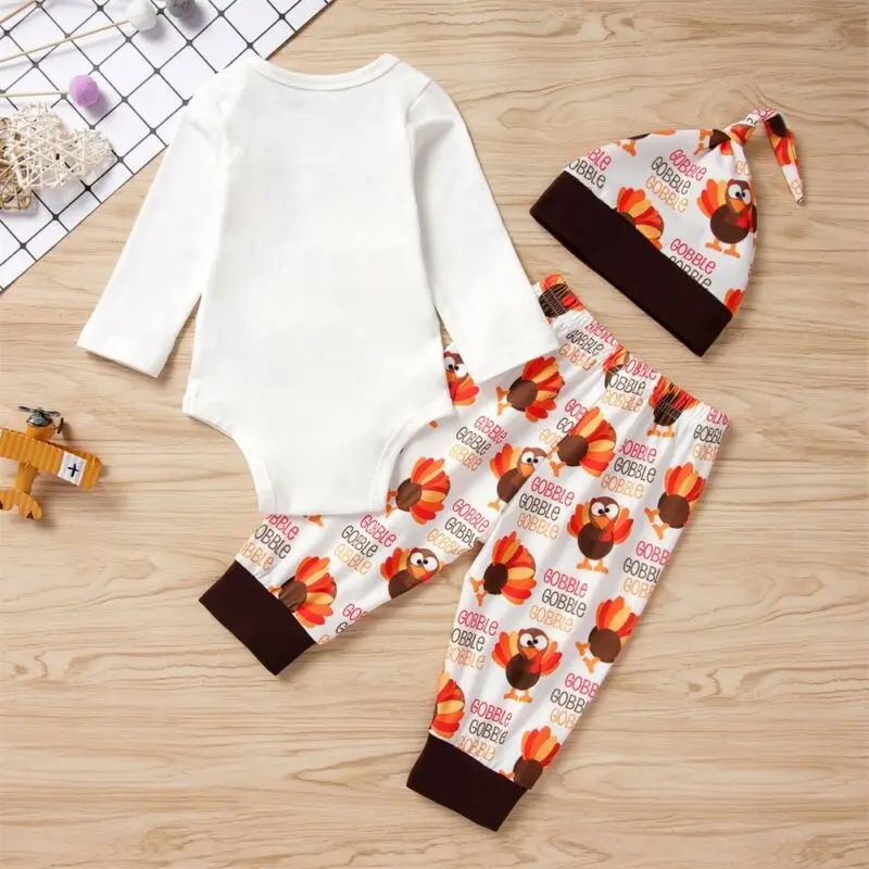 Special Chance for Newborn Baby My First Thanksgiving 3PCS Outfit Cute Turkey Printed Little Boys Girls Bodysuit+Pants