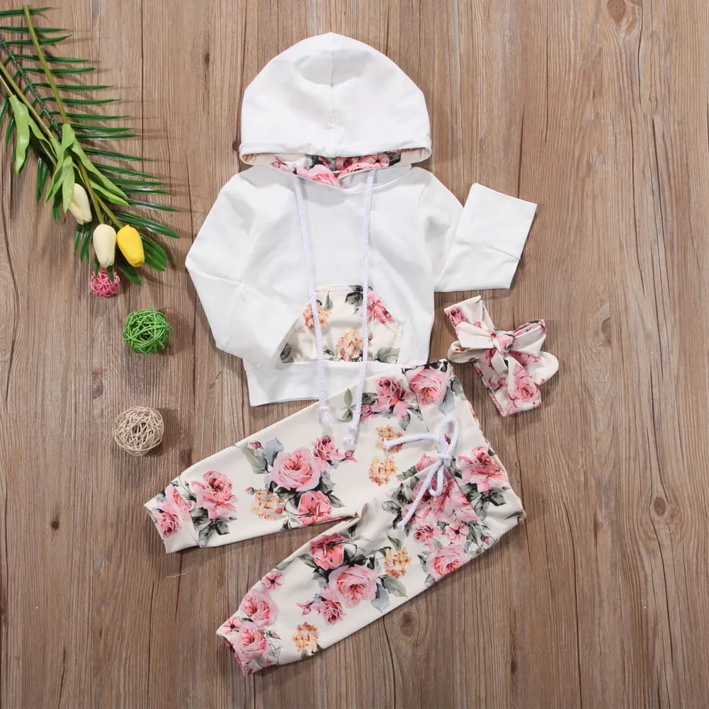 Best Chance of Toddler Baby Girl Kids Floral Sweatshirt Hoodies+Pants Outfit with Headband Casual Playsuit New Sty
